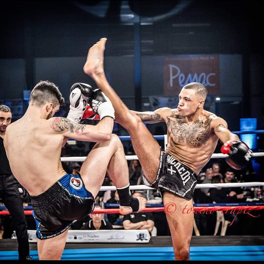 En utilisant l'ensemble de votre corps comme une arme, vous apprendrez à améliorer votre motricité. Le kickboxing et le muay-thai est un art martial et un sport de combat sans pareil. En incorporant l'utilisation des genoux, des coudes, des tibias et des mains, vous acquérez des techniques utiles aussi bien à courte portée, moyenne portée et au corps à corps.